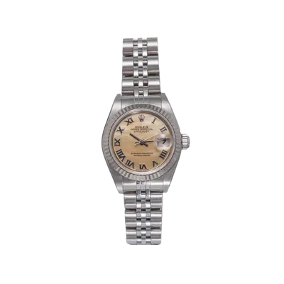 Datejust 26mm en acier, cadran Rolex beige, lunette cannelée, bracelet jubilé acier