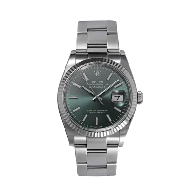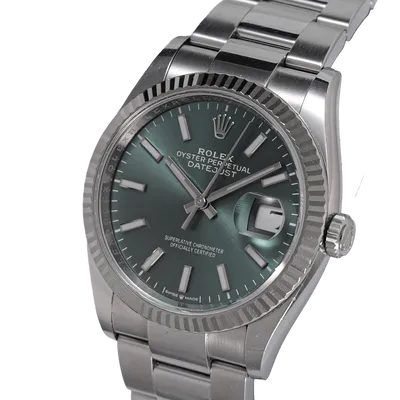 Datejust 36mm en acier, cadran menthe, lunette cannelée, bracelet oyster acier