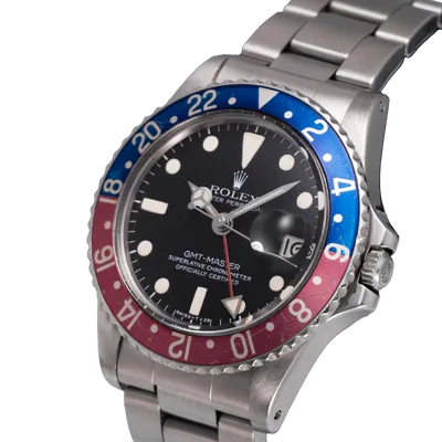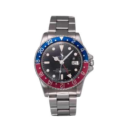 GMT-Master Pepsi 40mm en acier, cadran noir, lunette bleu/rouge, bracelet Oyster acier