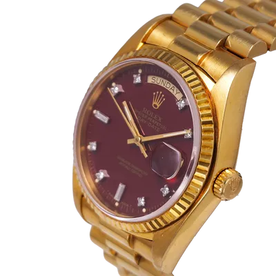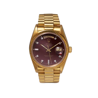 Oyster Perpetual Day-Date en or jaune 36mm, cadran Oxblood, lunette cannelée, bracelet President or jaune