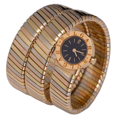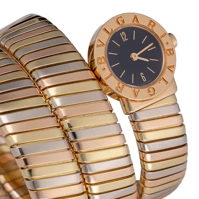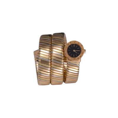 Serpenti Tubogas 3 ors (or rose, or jaune, or blanc), cadran noir, bracelet 3 ors.